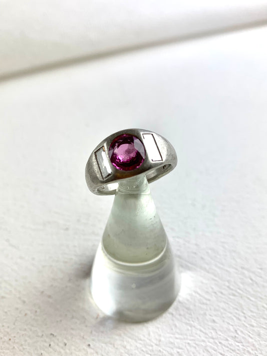 Betts, Malcolm - Platinum Ring with Oval Pink Sapphire & Diamonds, Size J1/2