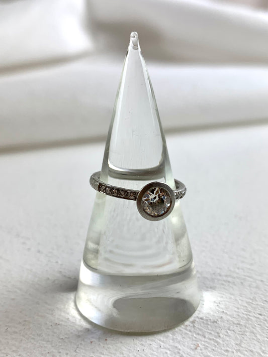 Betts, Malcolm - Platinum Ring with Channel Set Diamonds & Round Diamond, Size K