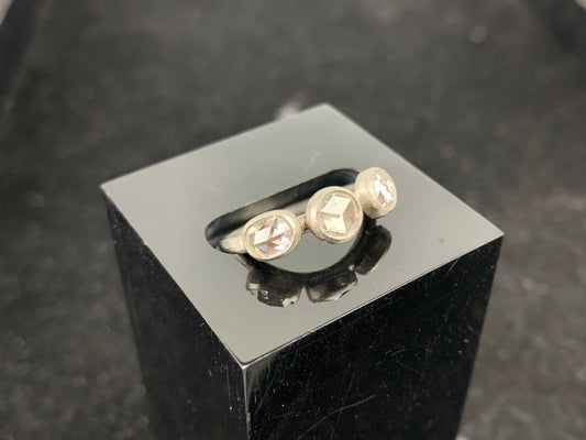 Betts, Malcolm - Platinum Ring with 3 Round Rose Cut Diamonds, Size L