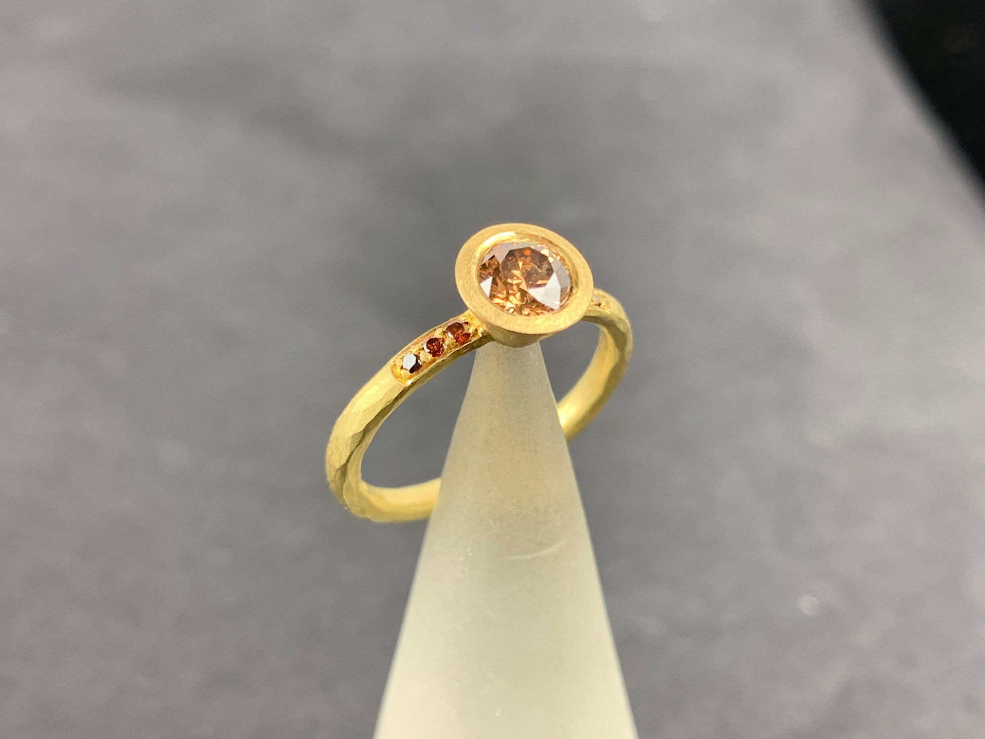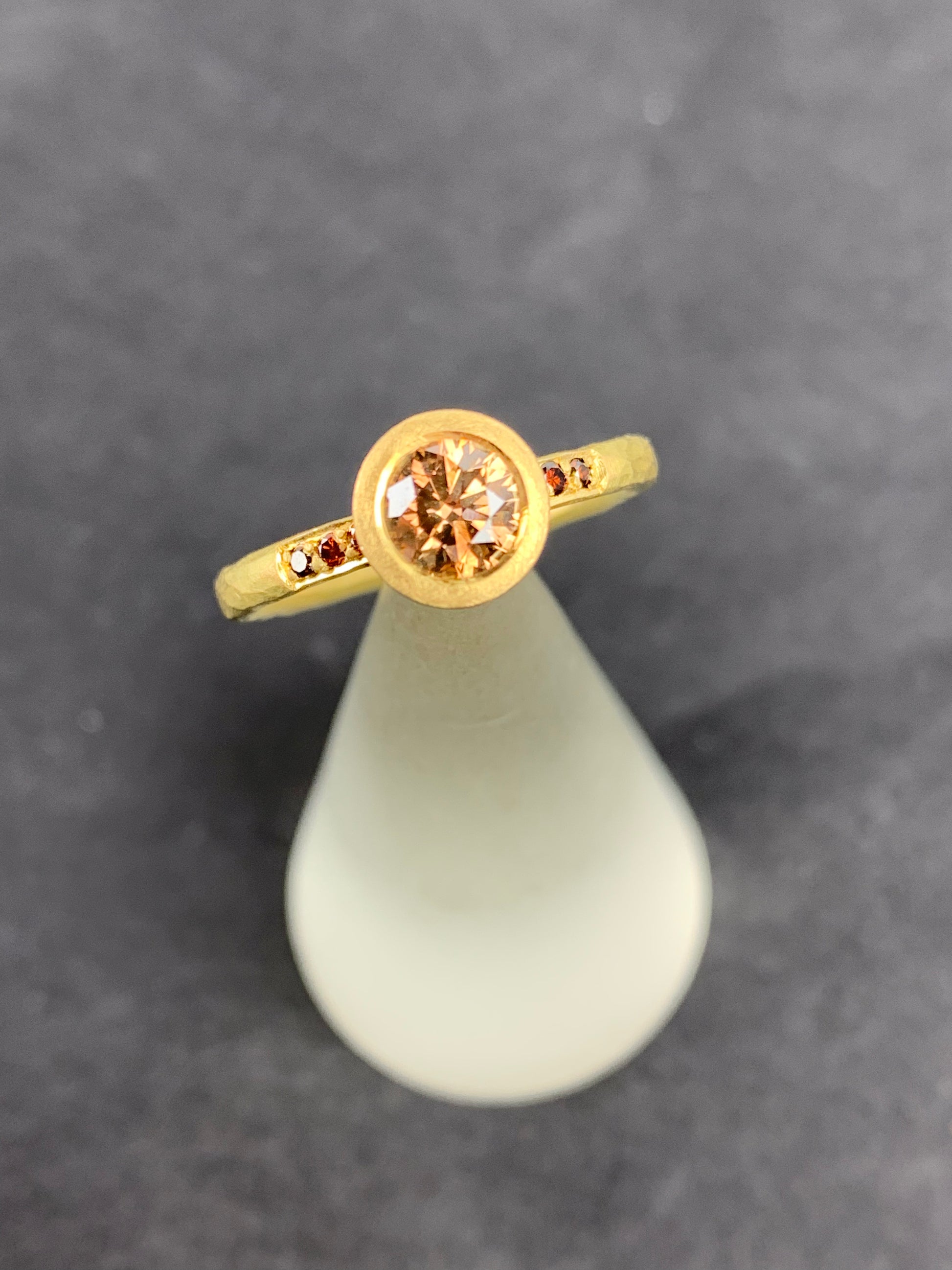 Malcolm Betts' 18ct gold ring handmade in the UK, with cognac diamond 0.50cts and channel set cognac diamonds.