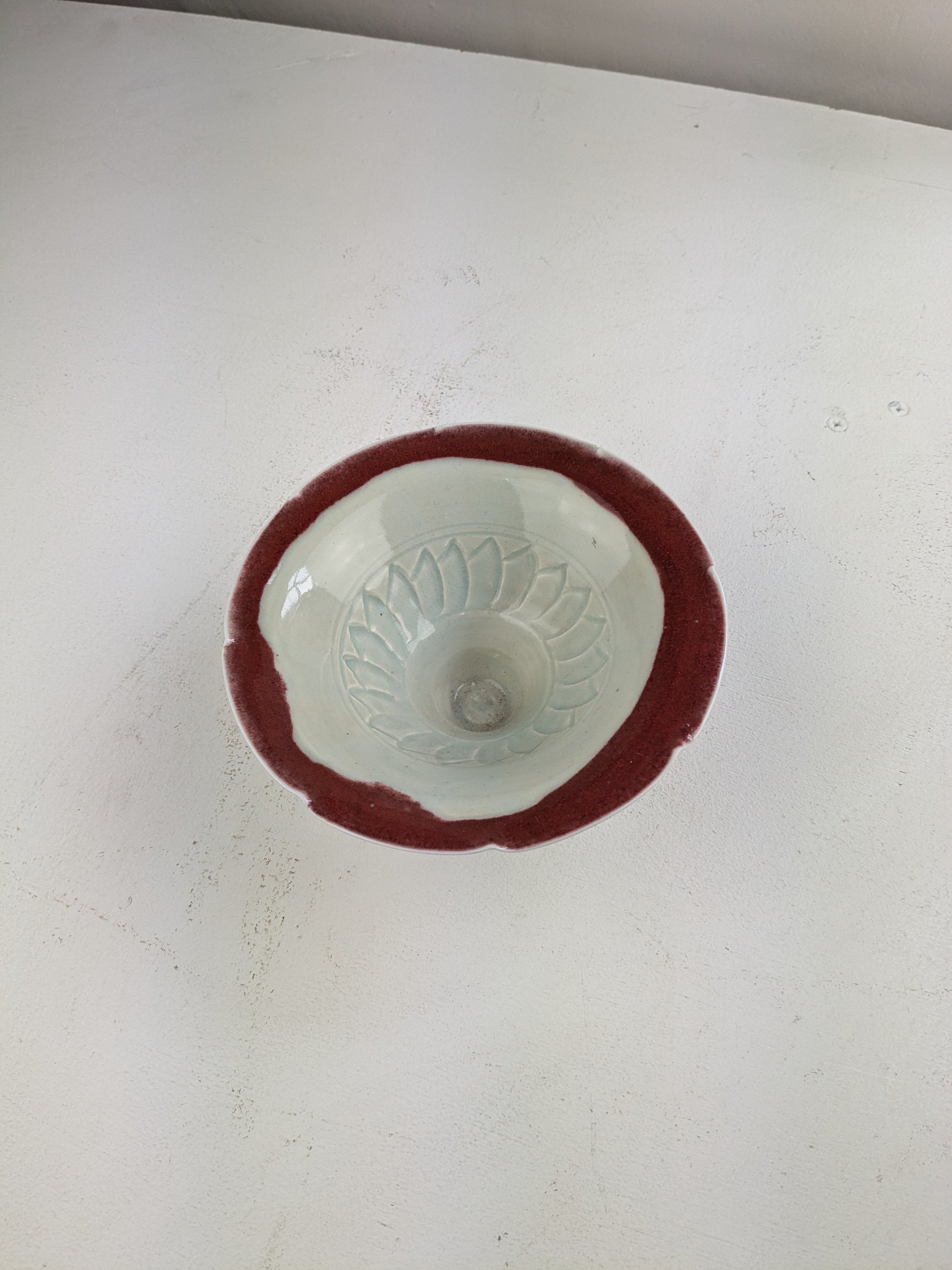 Bridget Drakeford - small celadon bowl copper red rim