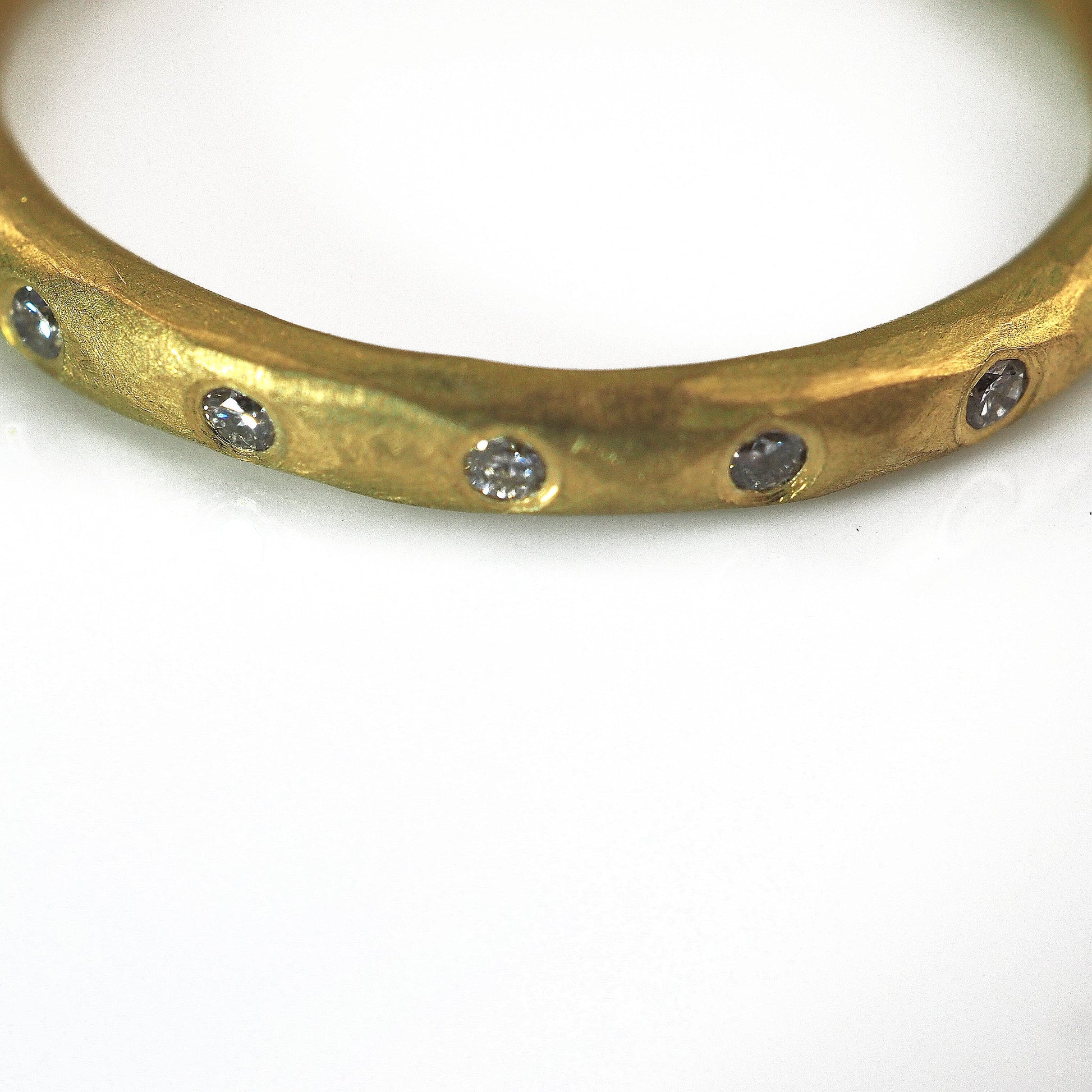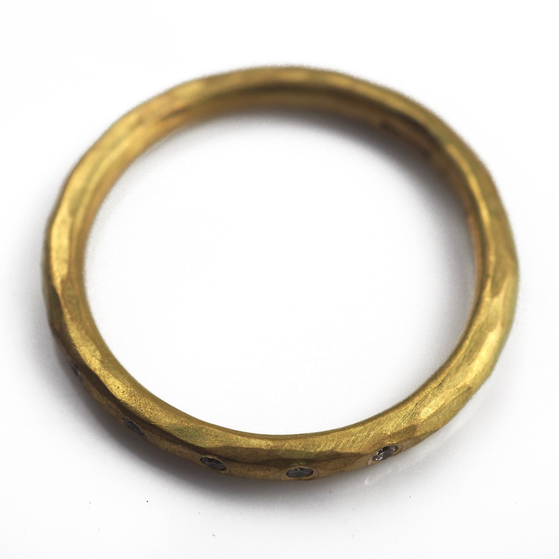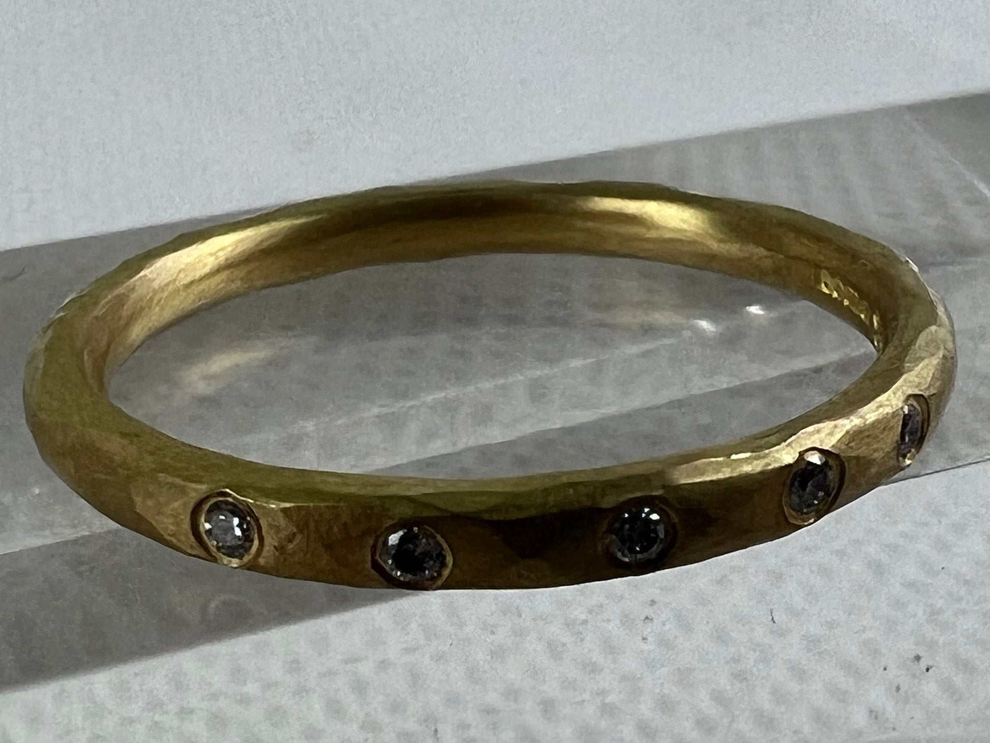 Malcolm Betts' ring handmade in the UK, using 18ct gold with five small channel set diamonds.