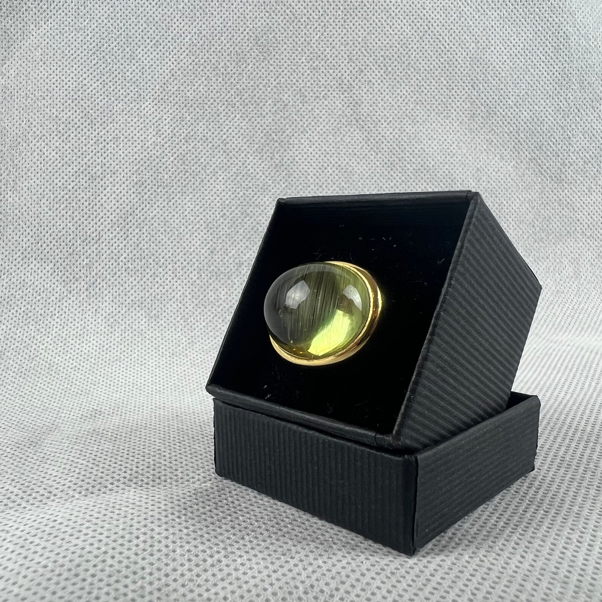 18ct yellow gold ring with large quartz by Alex Goodman.