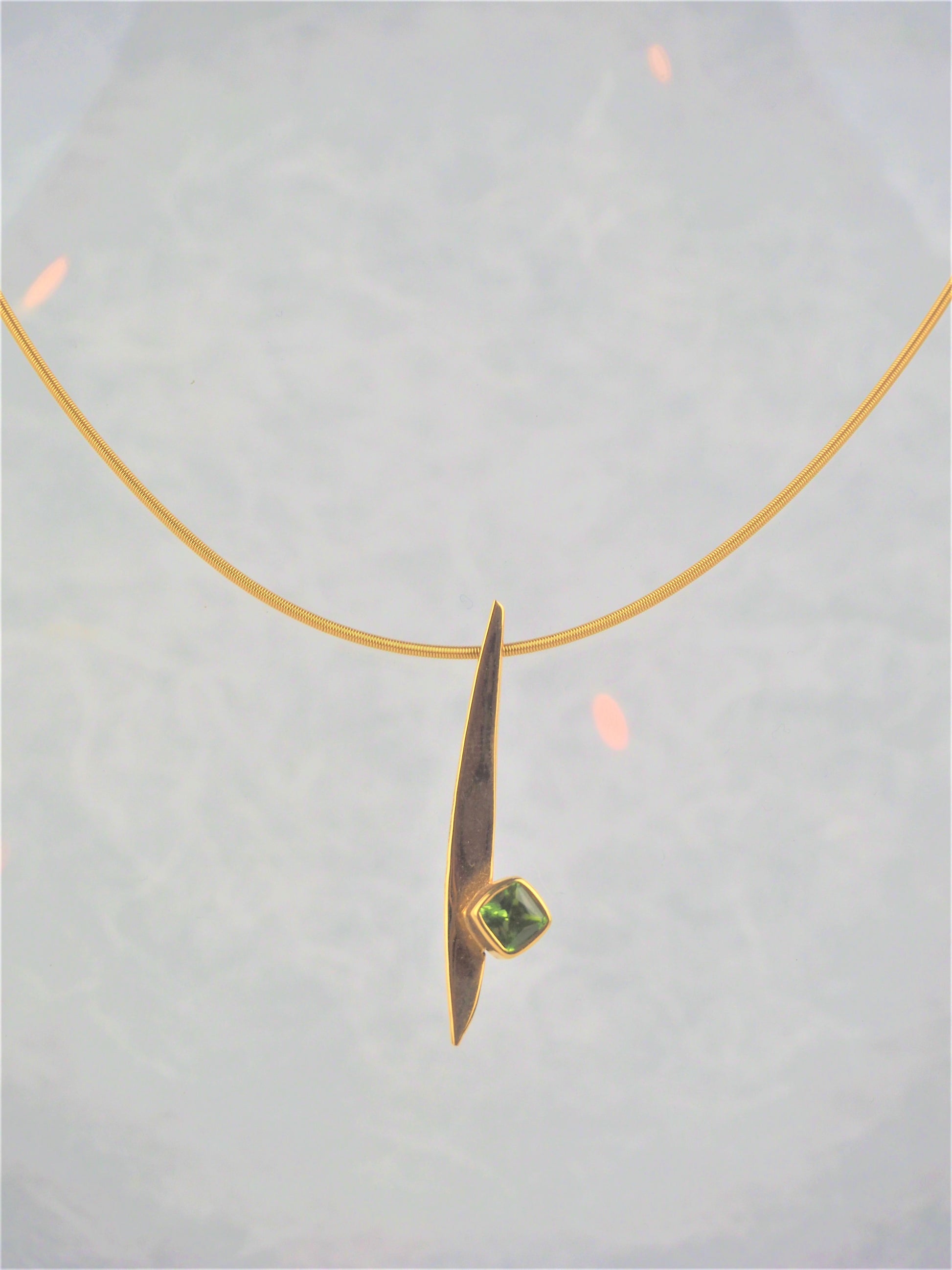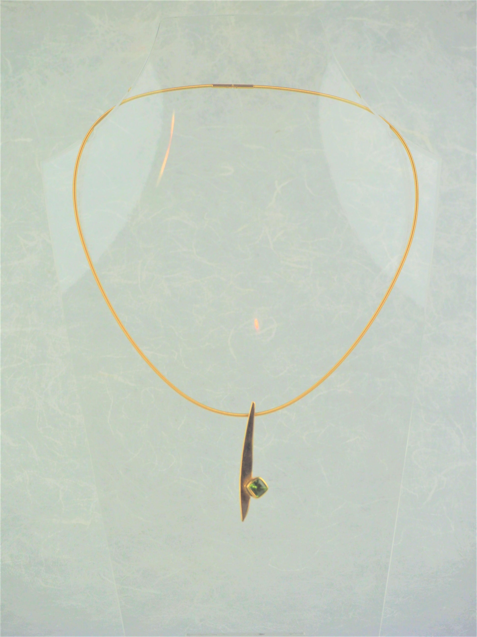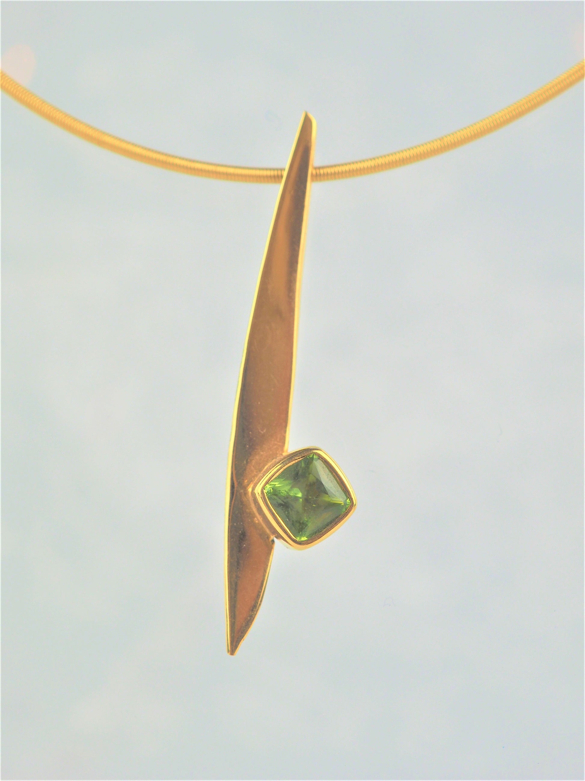 18ct gold pendant with a square peridot by Natasha Heaslip.