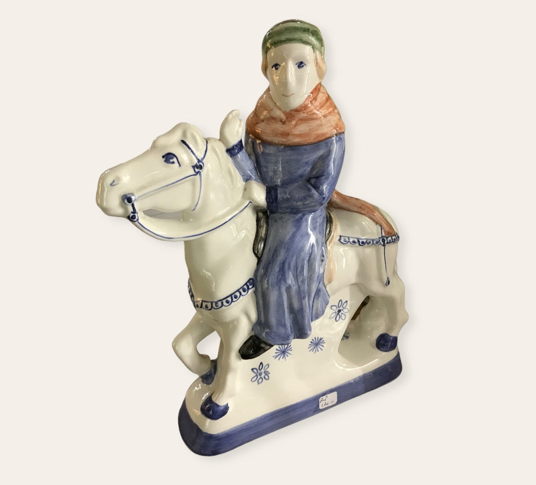 Rye Pottery figurine depicting The Nun's Priest from Chaucer's Canterbury Tales.