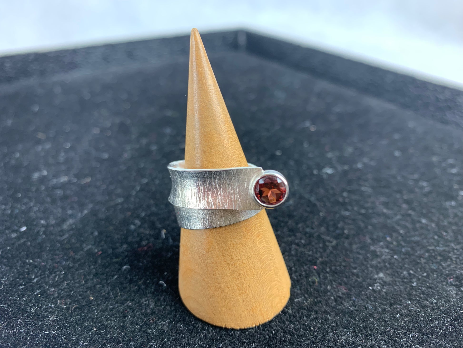 Architectural twist with 6mm garnet by Michele Wyckoff Smith
